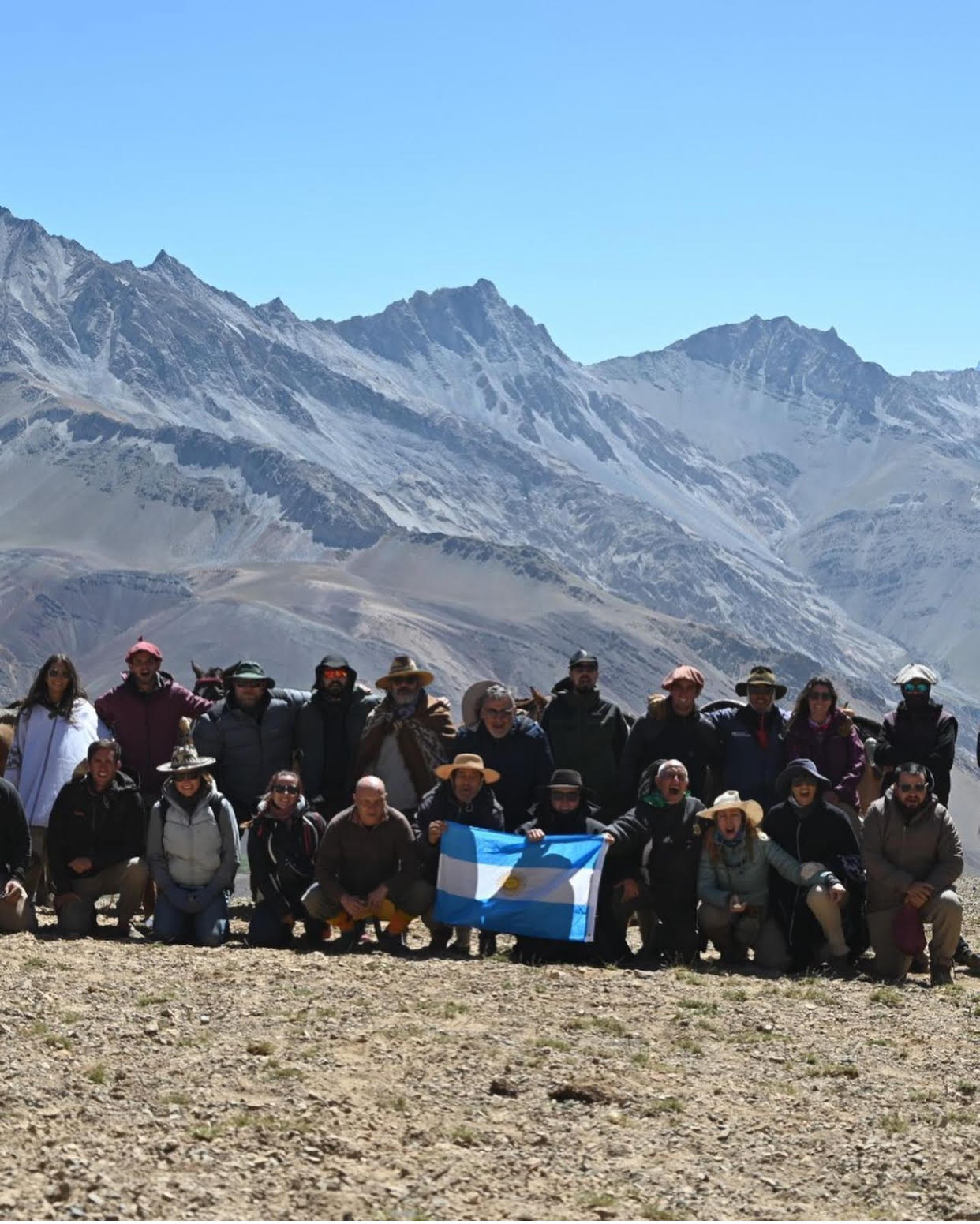 El ansiado día de hacer cumbre se acercaba, el despertar del relincho de los caballos invitaba a levantarse bien temprano. Salía nuevamente la fila de jinetes, baqueanos, gauchos, guías, caballos y mulas, hacia la cumbre para hacer Patria.
