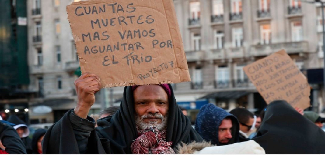 Con una caminata desde el Obelisco a la Plaza de Mayo diversas organizaciones sociales, de derechos humanos y políticas, sindicatos y personas en situación de calle reclamaron la declaración de la emergencia para quienes se encuentran en esa situación. Fue después de la difusión de la noticia de que en las últimas dos semanas seis personas murieron a causa del frío en el ámbito de la Ciudad de Buenos Aires.