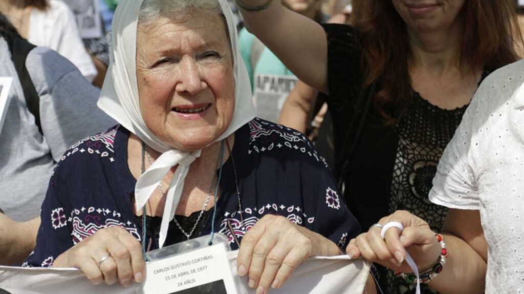 “Exactamente la mitad de su vida: mi papa desapareció cuando Norita tenía 47. Y durante otros 47 años ella lo estuvo buscando”. La cuenta redonda la ensaya Damián, nieto de Norita e hijo de Gustavo Cortiñas secuestrado un 15 de abril de 1977. Conversamos en el microestadio del predio de la Mansión Seré, en Morón donde la cola para despedirla es interminable y habla de su capacidad infinita para expandir y abrazar luchas sociales variopintas. Desde las plazas feministas al reclamo de las madres contra el gatillo fácil. Desde Japón al Kurdistan. Desde el México zapatista al Brasil de Lula. Desde el reclamo de justicia por Rafael Nahuel hasta las primeras marchas que denunciaban la desaparición de Luciano Arruga.