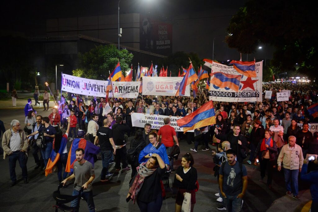 «Estamos muy conformes con la movilización de hoy. Las manifestaciones en Buenos Aires frente a las representaciones diplomáticas de Turquía comenzaron en los ’80, con un grupo reducido de militantes de nuestra institución. Hoy, la comunidad armenia en su conjunto se suma a esta marcha organizada por los jóvenes. Tuvimos amplias adhesiones por parte de todo el arco político y organismos de la sociedad civil», declaró Brenda Kechiyan, referente de Unión Juventud Armenia de Sudamérica, una de las organizadoras de la marcha.