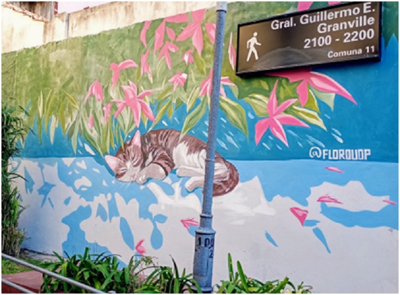 El día 5 de septiembre con motivo del Aniversario del Barrio comenzamos con la pintura del mural ubicado en Pasaje Granville y Av. Alvarez Jonte obra que realizó la Muralista – Ilustradora Florencia Perini @flouop.