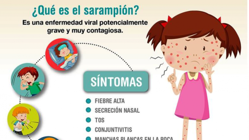 Es una enfermedad que se produce por el virus del sarampión. Es aguda y muy contagiosa, se propaga por la tos y los estornudos, el contacto personal íntimo o el contacto directo con secreciones nasales o faríngeas infectadas.