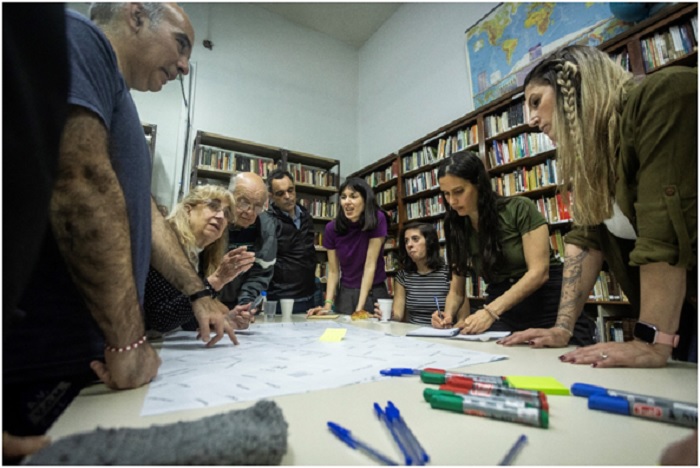 Por su parte, estuvo presente Juan Puerto, el ilustrador encargado de crear el mapa barrial histórico de La Paternal. Sin embargo, el proceso participativo no solo se limitó al trabajo artístico. También involucró a los habitantes del barrio en conversaciones profundas sobre lo que significa vivir en La Paternal.