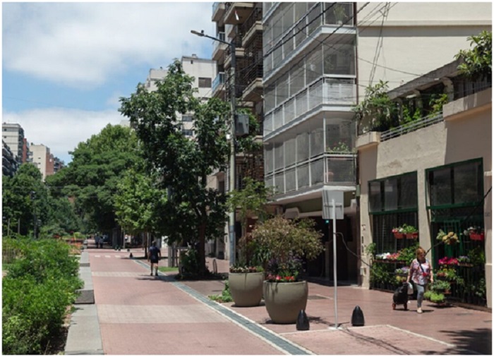 El pasaje conecta las plazas 24 de septiembre y Giordano Bruno, en el barrio. La intervención creó casi 10.000 metros cuadrados de superficie verde absorbente, una importante ampliación del área peatonal, cruces más seguros y nuevos espacios públicos recreativos.