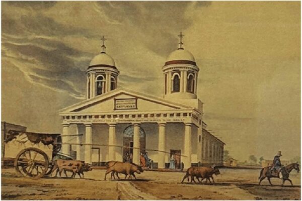 El Museo incorpora una obra, una litografía tomada de la original realizada por Carlos Pellegrini en 1841 que muestra el segundo templo que tuvo Flores