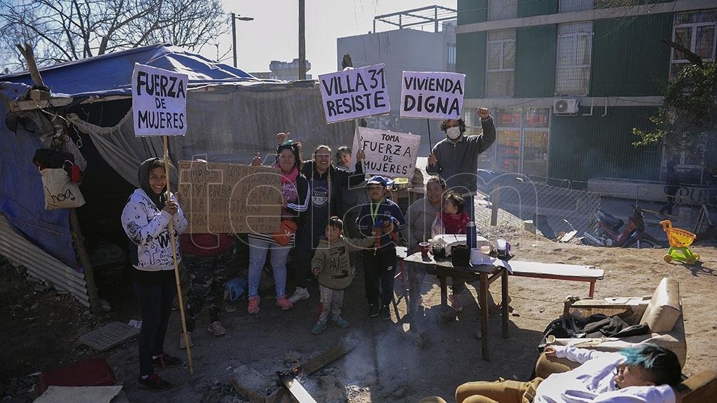 En precarias carpas, con unos 200 chicos en el asentamiento, con bajas temperaturas, ollas populares y fogones, las mujeres y algunos pocos hombres ocupantes del predio, la protesta se mantenía en uno de los costados del Barrio 31.