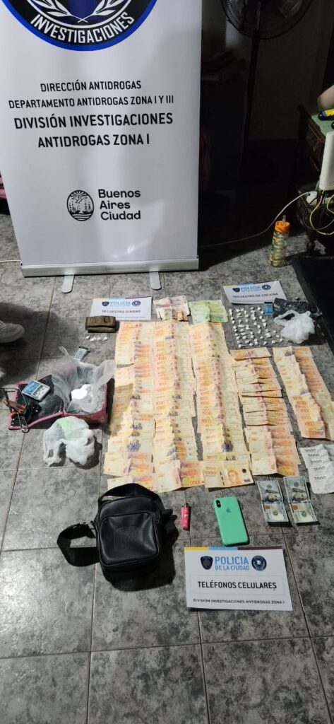 Además se secuestraron secuestraron 55 bolsas de nylon conteniendo cocaína (35,9 gramos), un trozo compacto de la misma sustancia con un peso de 97,7 gramos, 13,2 gramos de marihuana, una balanza de precisión, 462.330 pesos, 900 dólares, 220 pesos uruguayos, y dos teléfonos.