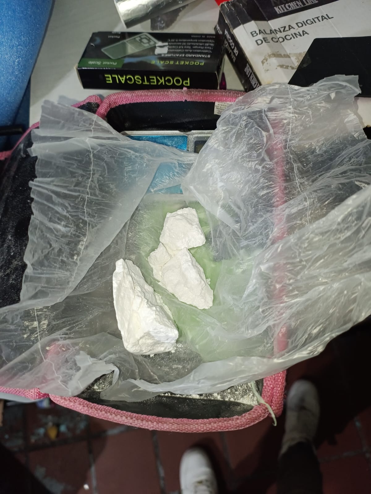 Además se secuestraron secuestraron 55 bolsas de nylon conteniendo cocaína (35,9 gramos), un trozo compacto de la misma sustancia con un peso de 97,7 gramos, 13,2 gramos de marihuana, una balanza de precisión, 462.330 pesos, 900 dólares, 220 pesos uruguayos, y dos teléfonos.