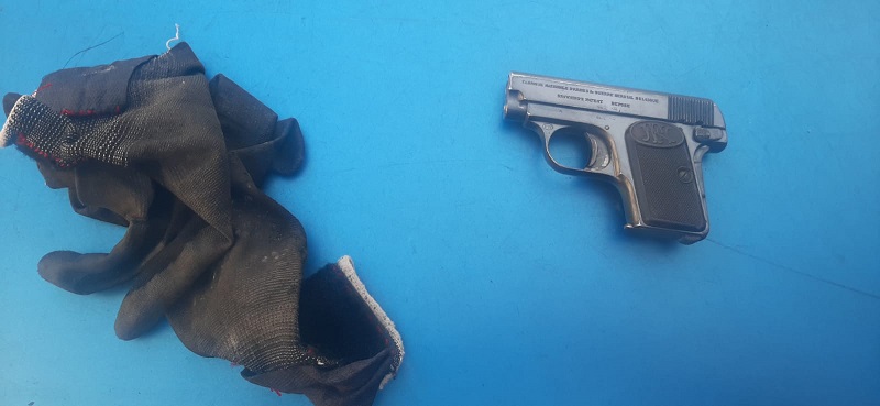 En el CMU advirtieron – a través de las cámaras – que el imputado arrojó un objeto al costado de un árbol mientras huía. Personal policial procedió a verificar y constatar que se trataba de una pistola Browning, calibre 22, en aparente condición de disparo y con almacén cargador con seis cartuchos a bala.
