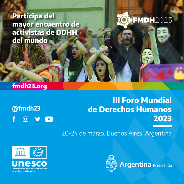 El FMDH23 es un espacio de debate público sobre los Derechos Humanos en el mundo. En esta edición se han inscripto al momento más de quince mil personas para participar activamente de los principales avances y desafíos centrados en el respeto a las diferencias, la participación social, la reducción de las desigualdades, promoviendo la equidad e inclusión social. Está concebido para aproximar e integrar organizaciones nacionales, regionales e internacionales con compromiso en la vigencia de los derechos humanos.