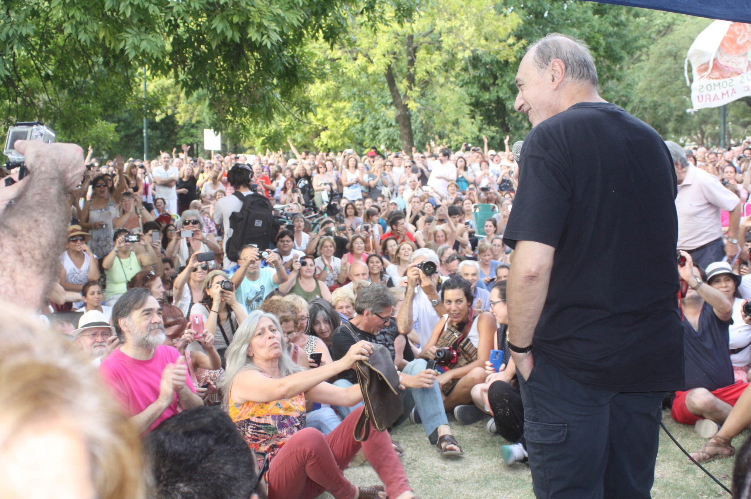“Me parece que es esta una caricatura de dictadura, pero es peligrosa porque son muy brutos. La dictadura era otra cosa, tenemos otro espacio, estamos en esta plaza, volvemos a los orígenes, podemos conversar, reflexionar, pero sobretodo cuidemos a nuestros pibes”.