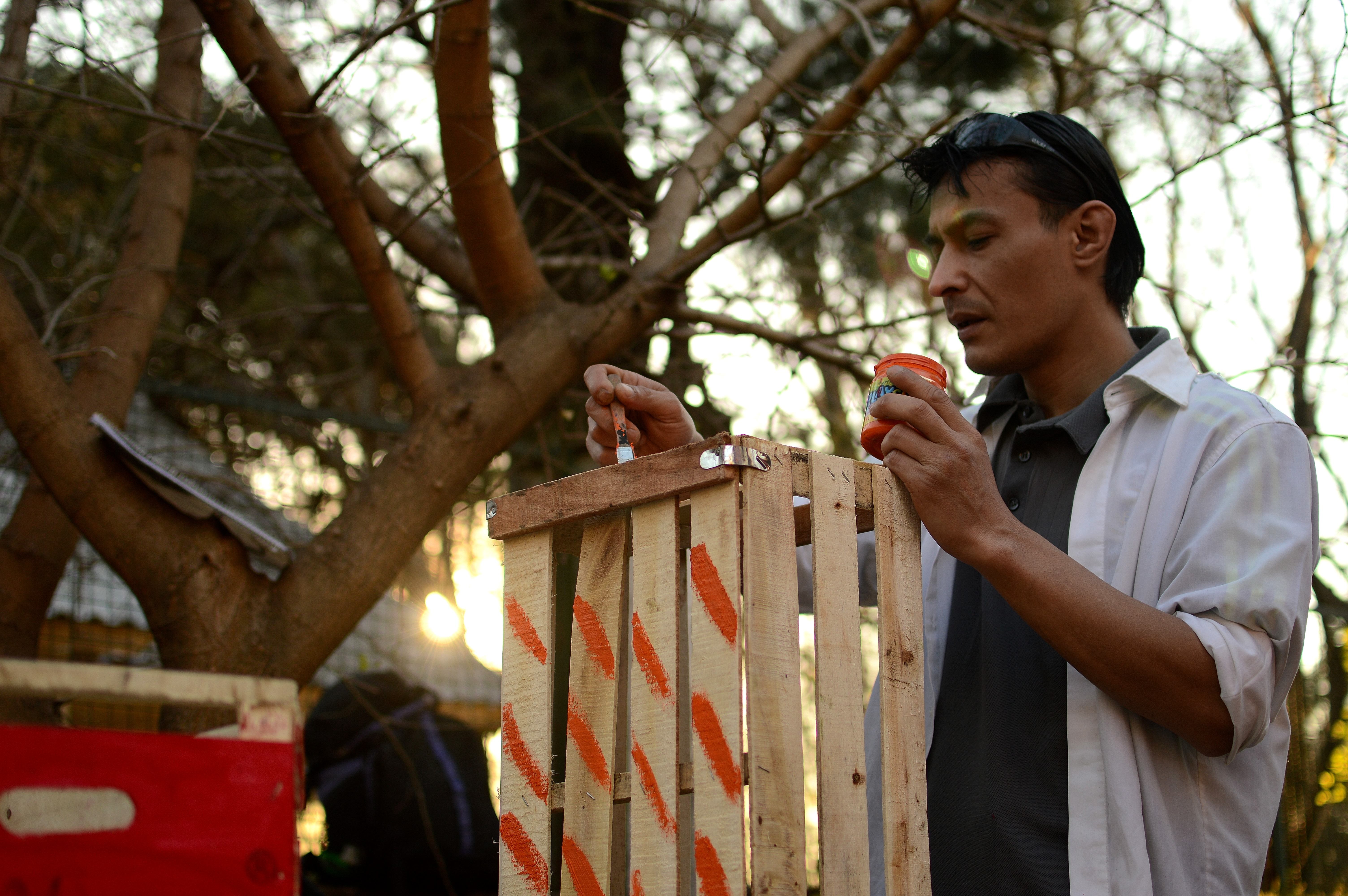 Sin embargo, en medio de uno de los parques, un grupo pintaba de los más diversos colores unos cajones de pintura que serían muebles ecológicos. Era el grupo “Del Tomate”, un taller de arte voluntario que organizan estudiantes de psicología de la Universidad de Buenos Aires para aportar una terapia alternativa.