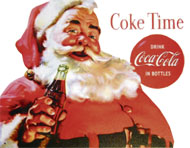 Es que la imagen actual del entrañable personaje navideño fue perpetrada por los creativos de la bebida cola. Una imagen tan popular no podía soslayarse a la hora de programar las nuevas campañas de ventas. En 1931, Habdon Sundblom transformó al gnomo de Nast en el gordinflón agradable que todos conocemos. Como era previsible, manchó su traje con los colores de la compañía y le encajó una botella de gaseosa en la mano derecha.