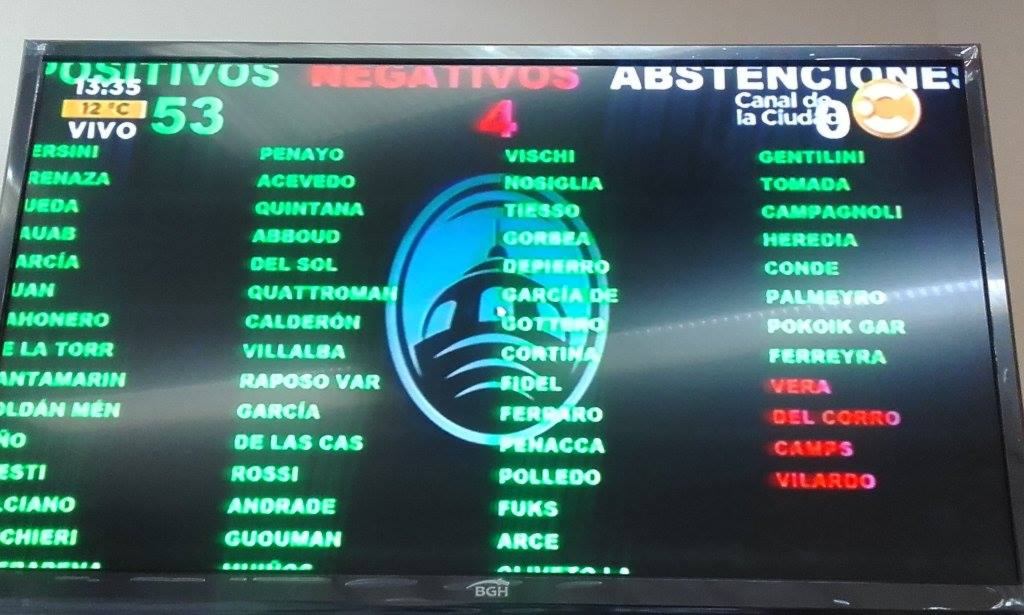 32 votos a favor: PRO+CC abstención del FPV (que en votación de un proyecto de ley de mayoría simple es un voto positivo)