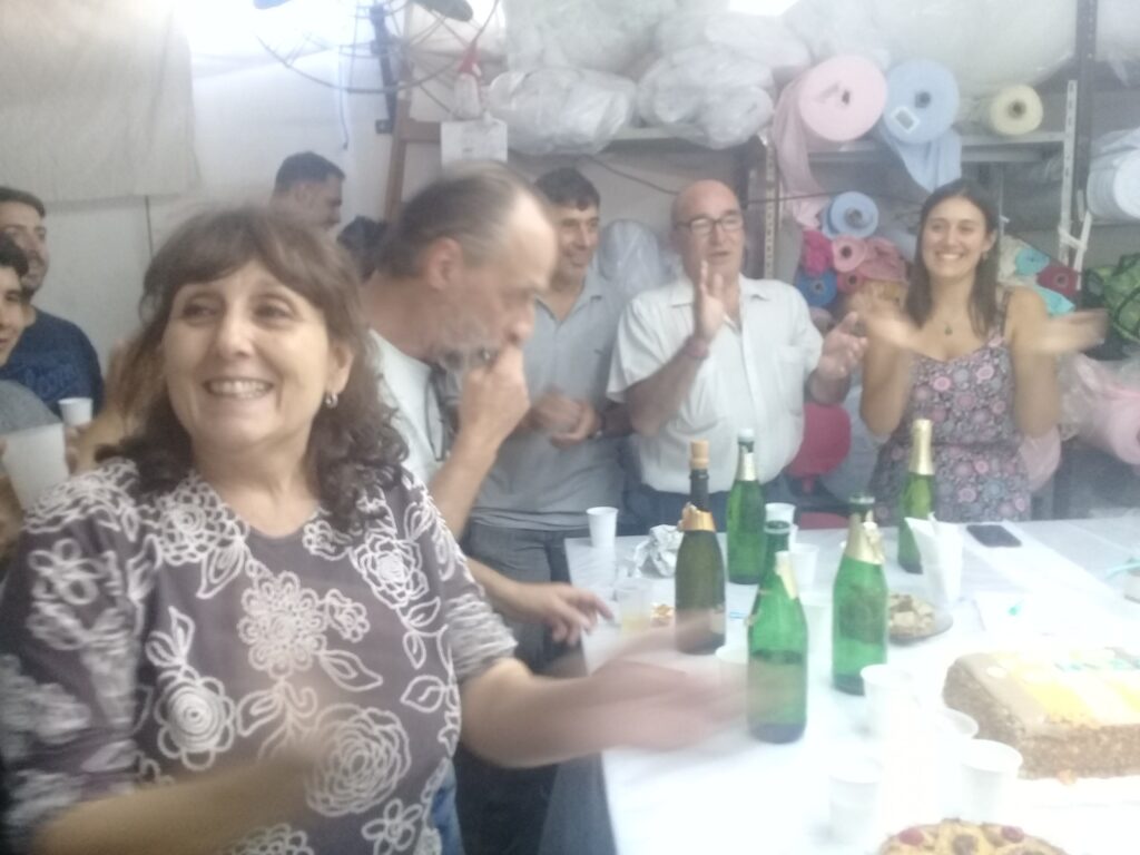Tomaron la fábrica, pelearon por su fuente de trabajo, se conformaron en cooperativa y revirtieron una situación muy adversa, en un logro positivo para ellos y sus familias: a un año de comenzar la lucha, la empresa esta recuperada, tienen trabajo digno y festejaron junto a comuneros, sindicalistas, abogados y vecinos que acompañaron la determinación de estos trabajadores. Festejaron con sonrisas, rodeados de amigos y de máquinas y telas.