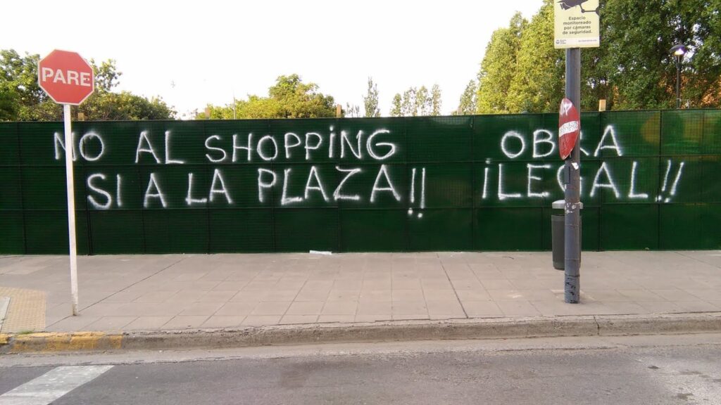 Ante la férrea oposición de los vecinos a que se construya un shopping en el lugar que por ley debía haber una plaza, el vicejefe de Gobierno porteño, Diego Santilli, declaró que los vecinos necesitan un espacio para ir a tomar mate o llevar a sus nietos y no más comercios.