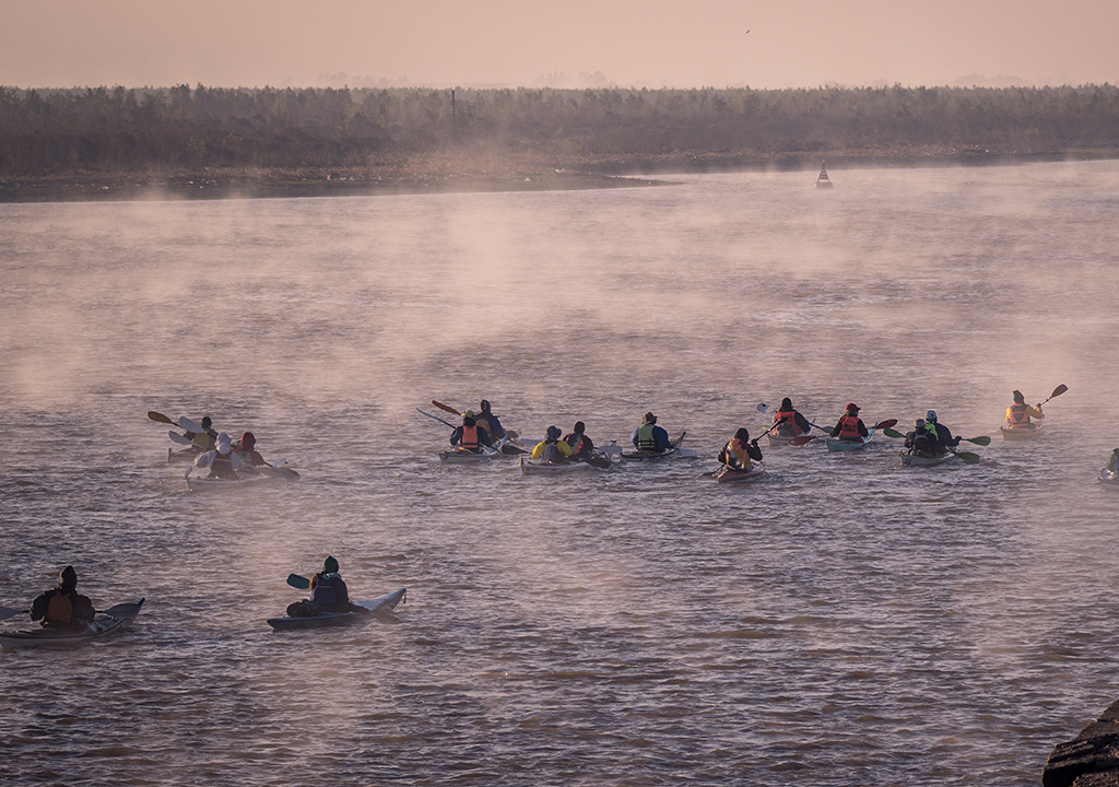 Fueron 350 kilómetros de testimonio que hoy podemos ofrendar y referir, para dar cuenta de este tiempo abismal y peligroso que nos moviliza. Íbamos remando hacia el Congreso de la Nación, aunque remamos mucho más hacia la orilla compañera, de los pueblos de la costa, que cada cual en su sitio pone manos, inteligencia y corazón, para aportar algún límite en la atroz violación del territorio que está ocurriendo año tras año, minuto a minuto, en el Delta y alrededores del río Paraná.