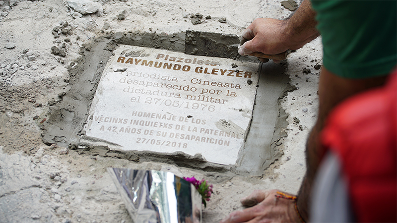 El acto se llevó a cabo en la plazoleta que lleva su nombre y en el marco del 42° aniversario de su desaparición forzada se volvió a colocar la placa recordatoria que fuera destruida y se además, se conmemoró el Día del Documentalista, con testimonios de varios compañeros de Gleyzer, que recordaron la dura época de persecución y desaparición de personas en la época militar. El dia fue muy agradable y el acto fue animado con números musicales en vivo, una radio abierta y ricos choripanes.